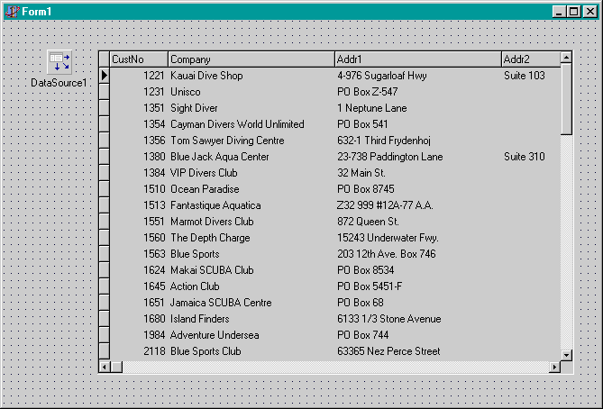 Tijdens design-time zie je alle data in het DBGrid verschijnen. Het gekke is echter dat als we een data module gebruiken met een ClientDataSet erop dat gebruikt wordt in een ander Form, dat we dan tijdens run-time geen data zien. Het grid blijft leeg, en de data in de ClientDataSet is om de een of andere reden weer weg. Als we de ClientDataSet oppakken en op het form zelf neerzetten dan werkt het wel, en zien we ook alle records tijdens run-time.