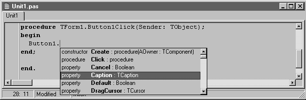 Bijvoorbeeld als de "Button1." hebben ingetikt, waarna we natuurlijk een property of method van deze Button willen gebruiken.
