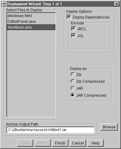 Merk op dat we zowel de Borland JBCL als de standard JGL classes kunnen negeren als ze al op de target machine staan (vergelijkbaar met het deployen van Delphi 3 packages bijvoorbeeld):