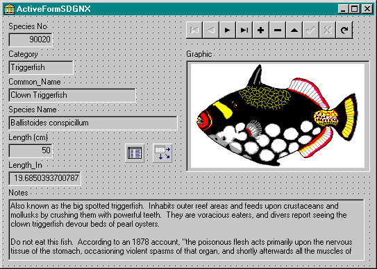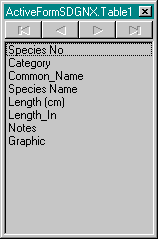 Zet een TTable component op dit ActiveForm, geef de DatabaseName de waarde DBDEMOS, de TableName de waarde BIOLIFE.DB (inderdaad, dezelfde die we altijd gebruiken) en dubbelklik op de TTable component op de Fieldseditor op te starten.
