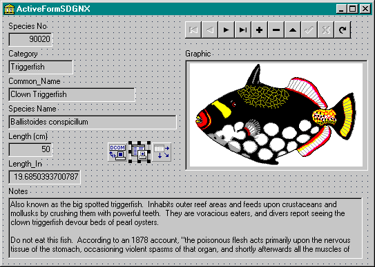 Om de layout van de ActiveForm een beetje mooi te maken schuif ik meestal de DBGraphic control op naar rechtsboven, en zet er tenslotte nog een DBNavigator control bij (die ik dan met de hand moet verbinden met de DataSource component).