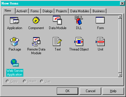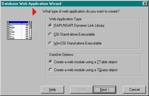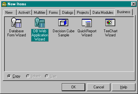 Delphi 4 heeft nu een tweede Wizard om een Web Module project te starten, de zgn. DB Web Application Wizard.