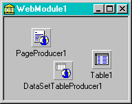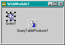 Start een nieuw Web Module project (met File | New - Web Module Application), en plaats een TQuery en een TQueryTableProducer op de Web Module.