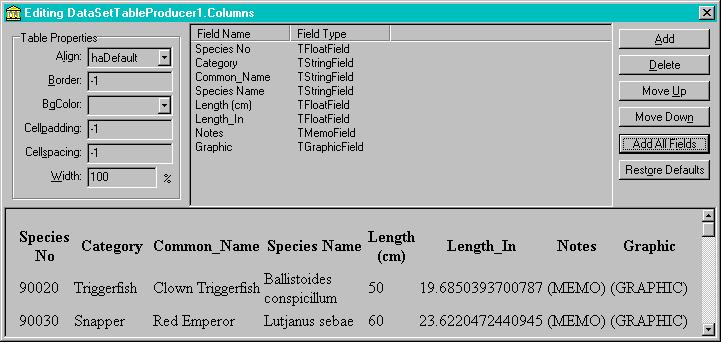Dit kunnen we doen met de nieuwe property editor voor het veld Columns van de TDataSetTableProducer:
