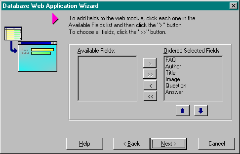 Vervolgens kunnen we aangeven welke velden we willen zien. Hierbij kies ik voor alle velden, inclusief de Image (TDBImage) en Question en Answer (beide TDBMemo) velden. Benieuwd hoe die er straks uit komen te zien.