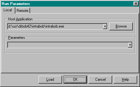 Vervolgens moeten we in de Delphi IDE met Run | Parameters als de "Host Application" INTRABOB.EXE invullen: