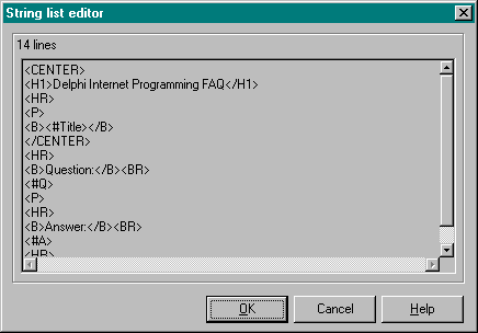 Indien we de normale PageProducer (of Delphi 3) hadden gebruikt, dan hadden we in de OnTag event de "Title", "Q" en "A" tags moeten vervangen door de huidige waarde van de Title, Q en A velden van Table1 (merk op dat Q en A nog steeds de calculated fields zijn die we eerder in deze aflevering gedefinieerd hadden).