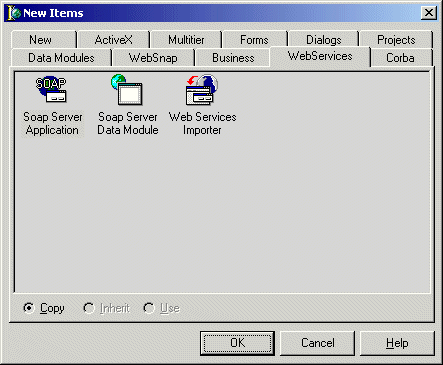 Hier zijn drie Wizards: eentje voor een nieuwe SOAP Server Application, eentje voor een Soap Server Data Module en eentje voor de Web Service Importer.