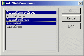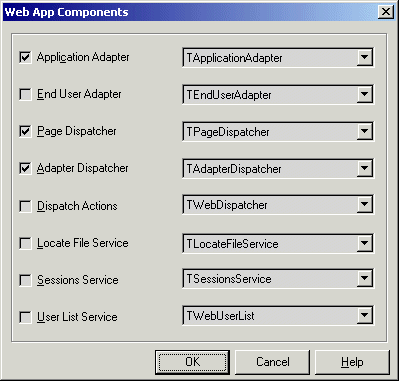 Op dit moment zijn de keuzes nog beperkt (alleen de EndUserAdapter kan ook een EndUserSessionAdapter worden), maar zodra je zelf speciale componenten maakt voor WebSnap dan komen die ook hier in de comboboxen te hangen.