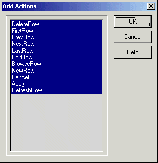 De keuze valt op een AdapterCommandColumn, die default met alle mogelijke command knoppen begint (DeleteRow, FirstRow, PrevRow, NextRow, LastRow, EditRow, BrowseRow, NewRow en RefreshRow).