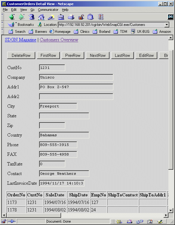 De pagina is ook terug te zetten in de Browse mode door op de BrowseRow knop te drukken. En natuurlijk kun je de nodige velden verwijderen als ze in de weg staan. En de titels of captions wijzigen (want die veldnamen zijn wel erg lelijk zo). Waar het om gaat is dat we met behulp van WebSnap en Adapter componenten in een paar minuten een webtoepassing in elkaar hebben gedraaid. En dat is nog veel en veel meer mogelijk is, dus ik kom er de volgende keer graag nog op terug.