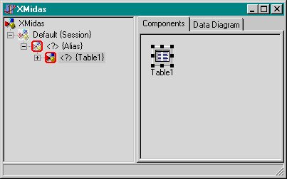 Instancing en Threading Model hebben goede default waarden (zie de on-line help voor details), en als we op OK klikken krijgen we een nieuwe Remote Data Module voor ons IxServer project, en krijgen we daarbij meteen de nieuwe visuele Data Module Designer te zien. Net als de "oude" data modules, is dit de plek om niet-visuele componenten zoals tables, queries en sessions neer te zetten. In dit geval beginnen we met één TTable component, en zien meteen een rode rand eromheen, die aangeeft dat om de een-of-andere reden deze component nog niet "klaar voor gebruik" is. Dit is erg handig, want het gebeurt ook bij andere componenten die we op de data module zetten: als iets niet klaar is voor gebruik, krijgt het een rode rand eromheen: