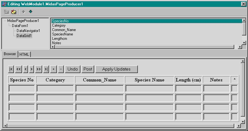 Hiervoor moeten we eerst de JaveScript codes uit DELPHI5\SOURCE\WebMidas naar een directory op de web server kopi ren, en vervolgens deze locatie als URL opgeven in de IncludePathURL property van de MidasPageProducer (dat wordt dus http://localhost/cgi-bin in mijn geval).
