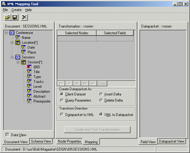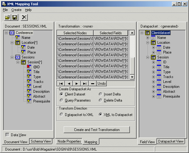 De XML Mapper is als externe tool beschikbaar (maar ook onder het Delphi 6 Tools menu), en kan gebruikt worden voor het omzetten van een XML document naar een (DataSnap compatible) dataset, een XML document naar een (ander) XML document, of een dataset terug naar een XML document.